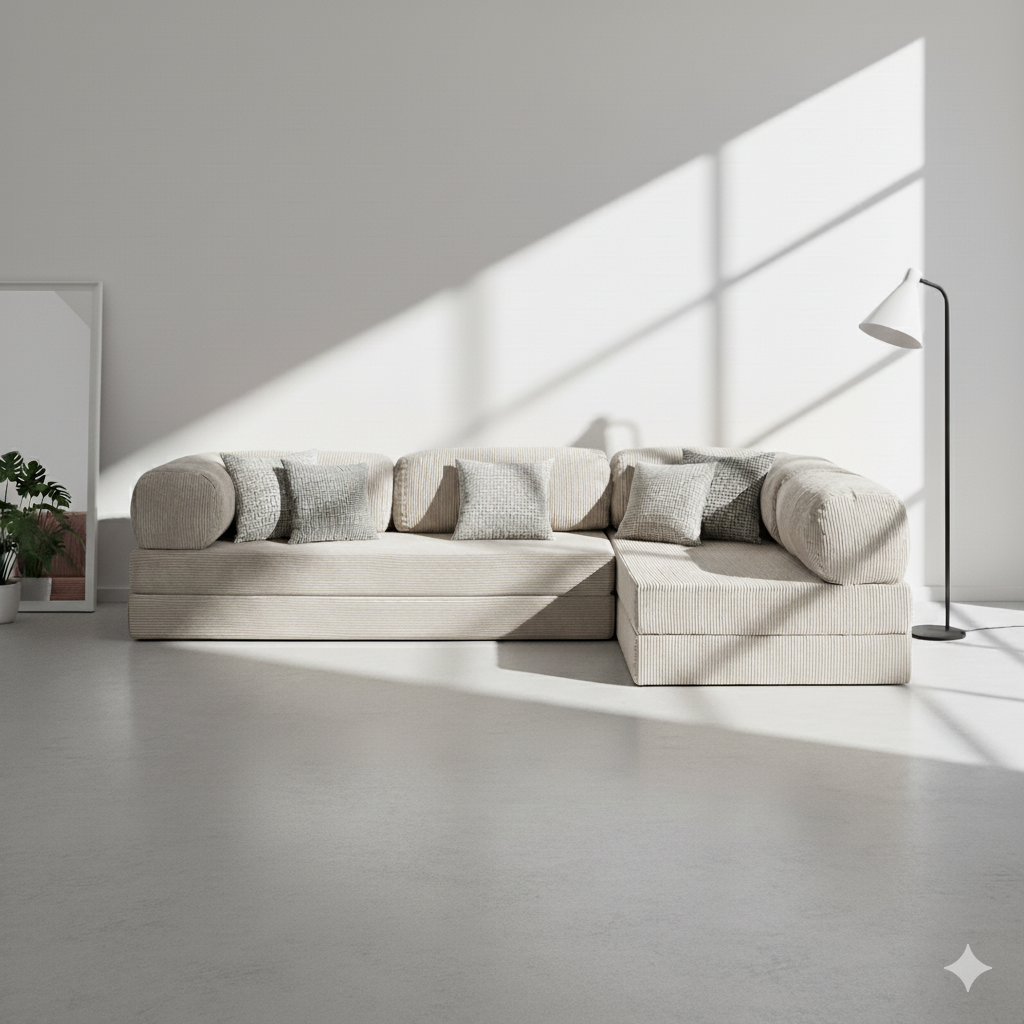 Ideaal voor kleine kamers en appartementen. Dankzij het slimme ontwerp en de afmetingen van 300x200 cm benut je elke hoek van de kamer optimaal.