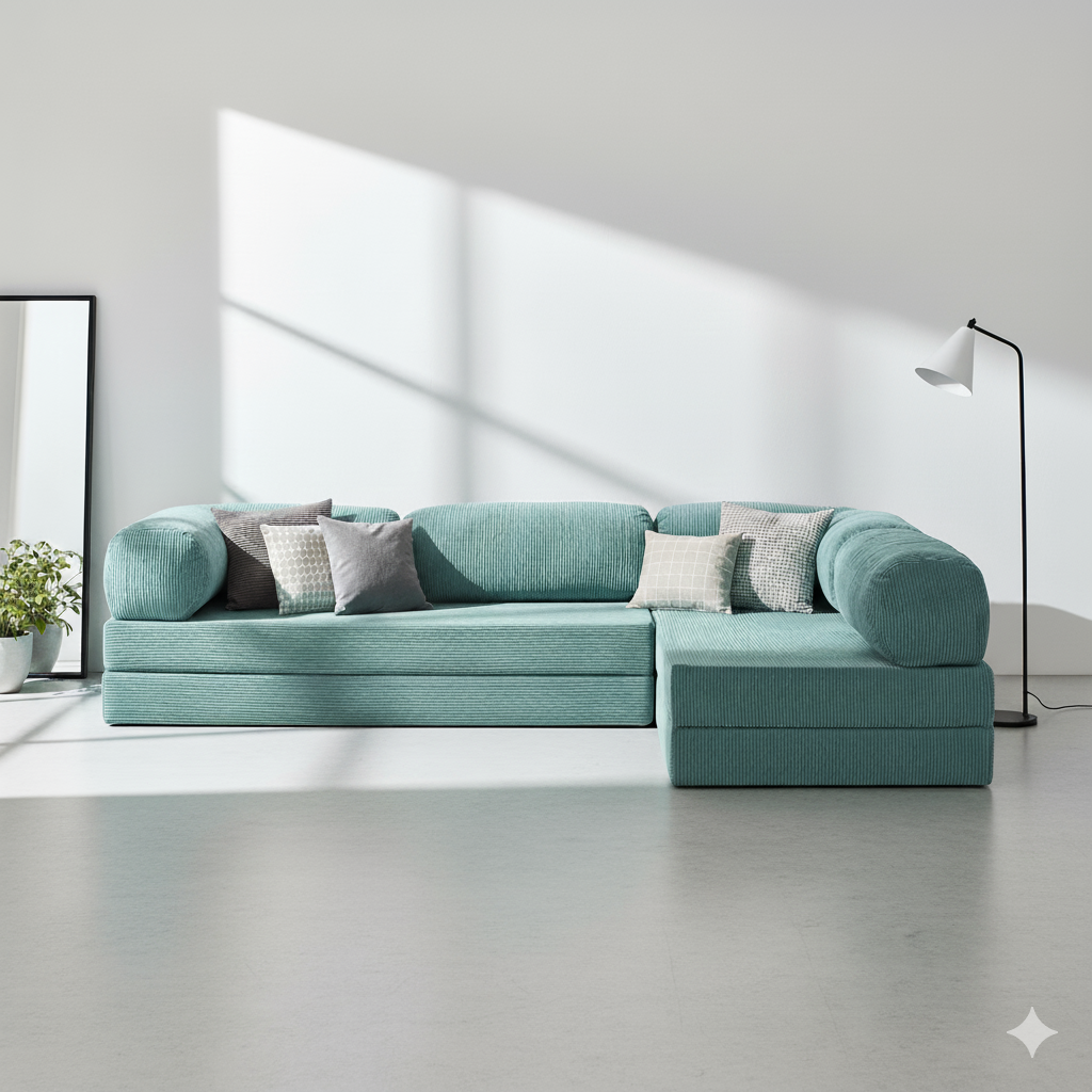 Ideaal voor kleine kamers en appartementen. Dankzij het slimme ontwerp en de afmetingen van 300x200 cm benut je elke hoek van de kamer optimaal.