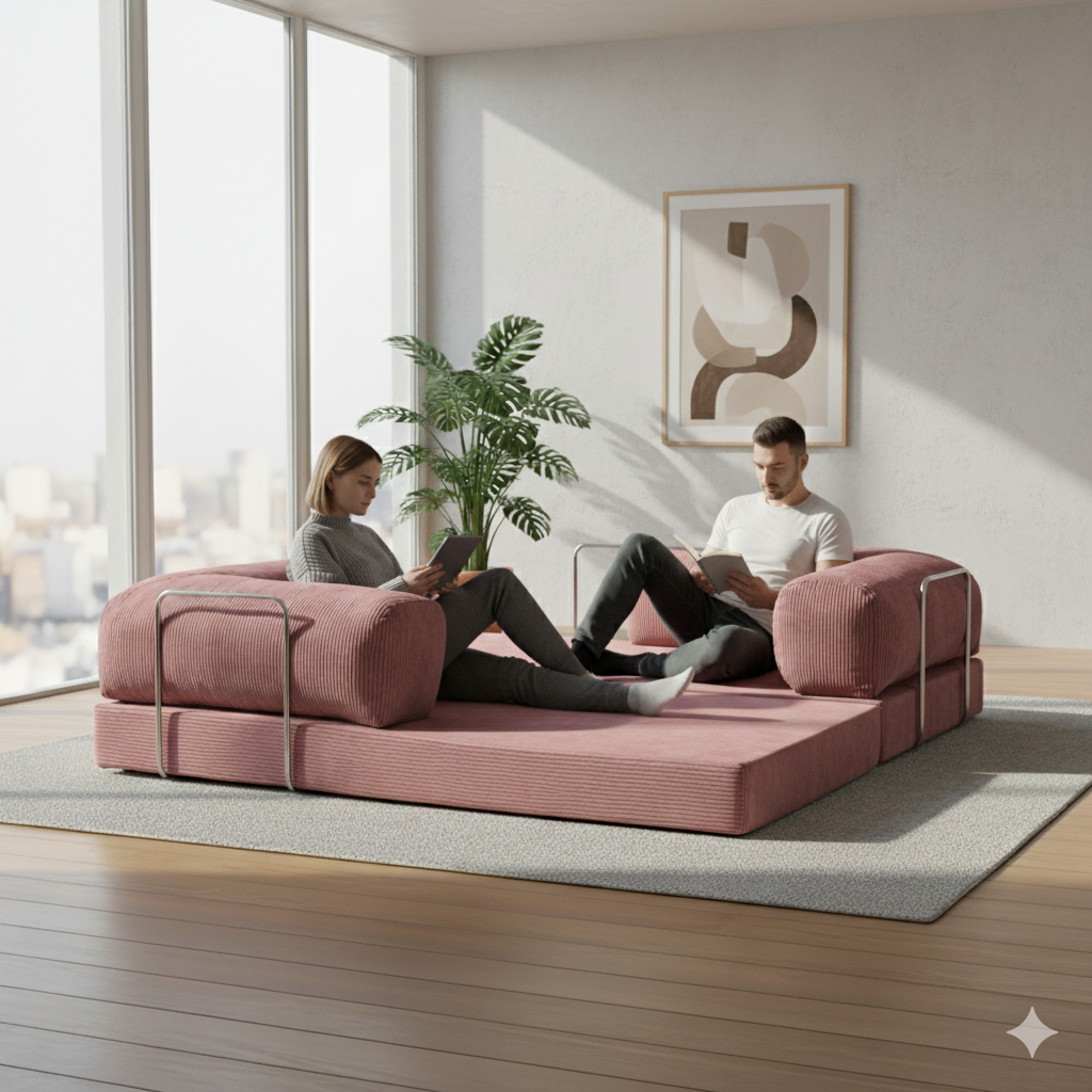 Ideaal voor kleine kamers en appartementen. Dankzij het slimme ontwerp en compacte formaat (100x200 cm) past hij moeiteloos in elke hoek van je huis. Gebruik hem als bed, bank, ligstoel, loungezetel of activiteitenmatras – veelzijdigheid gegarandeerd!