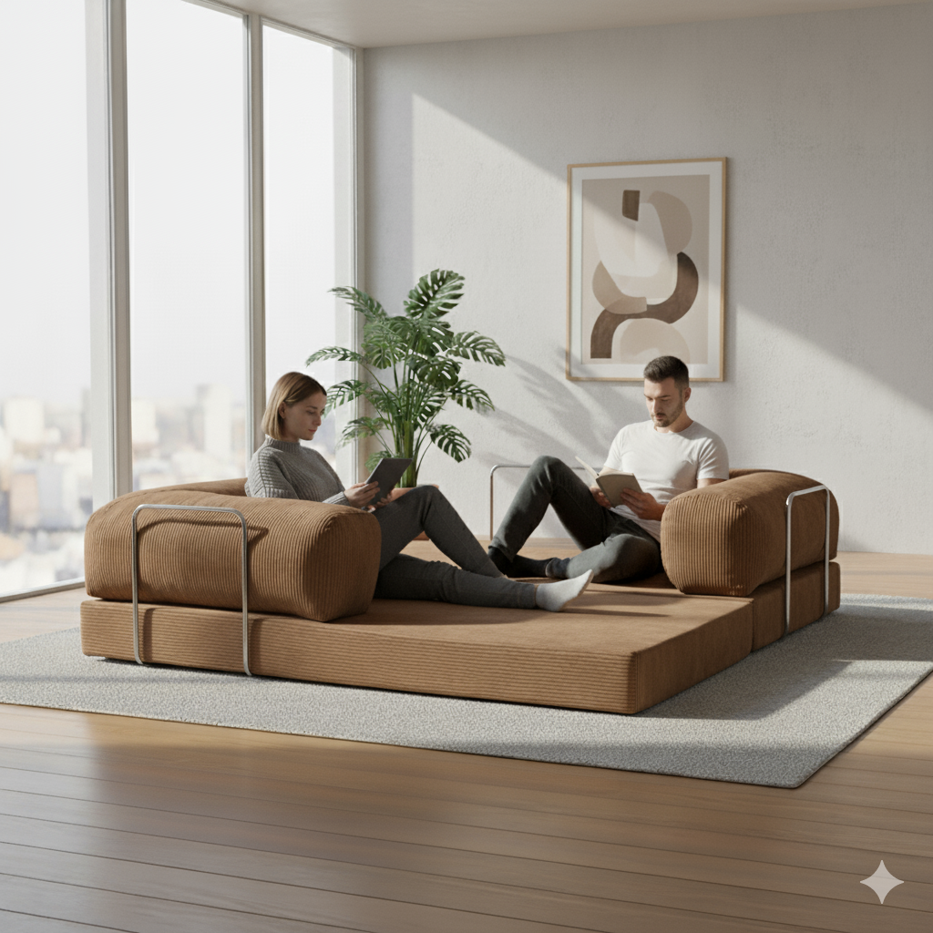 Ideaal voor kleine kamers en appartementen. Dankzij het slimme ontwerp en compacte formaat (100x200 cm) past hij moeiteloos in elke hoek van je huis. Gebruik hem als bed, bank, ligstoel, loungezetel of activiteitenmatras – veelzijdigheid gegarandeerd!